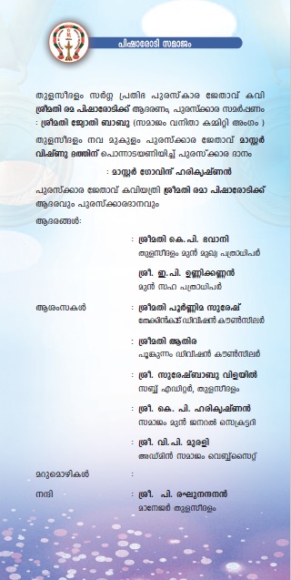 വാർഷിക പൊതുയോഗം, തുളസീദള സാഹിത്യ പുരസ്കാര സമർപ്പണം, വിദ്യാഭ്യാസ അവാർഡ് വിതരണം എന്നിവയുടെ വിശദമായ നോട്ടീസ് ഏവരുടെയും അറിവിലേക്കായി താഴെക്കൊടുക്കുന്നു.