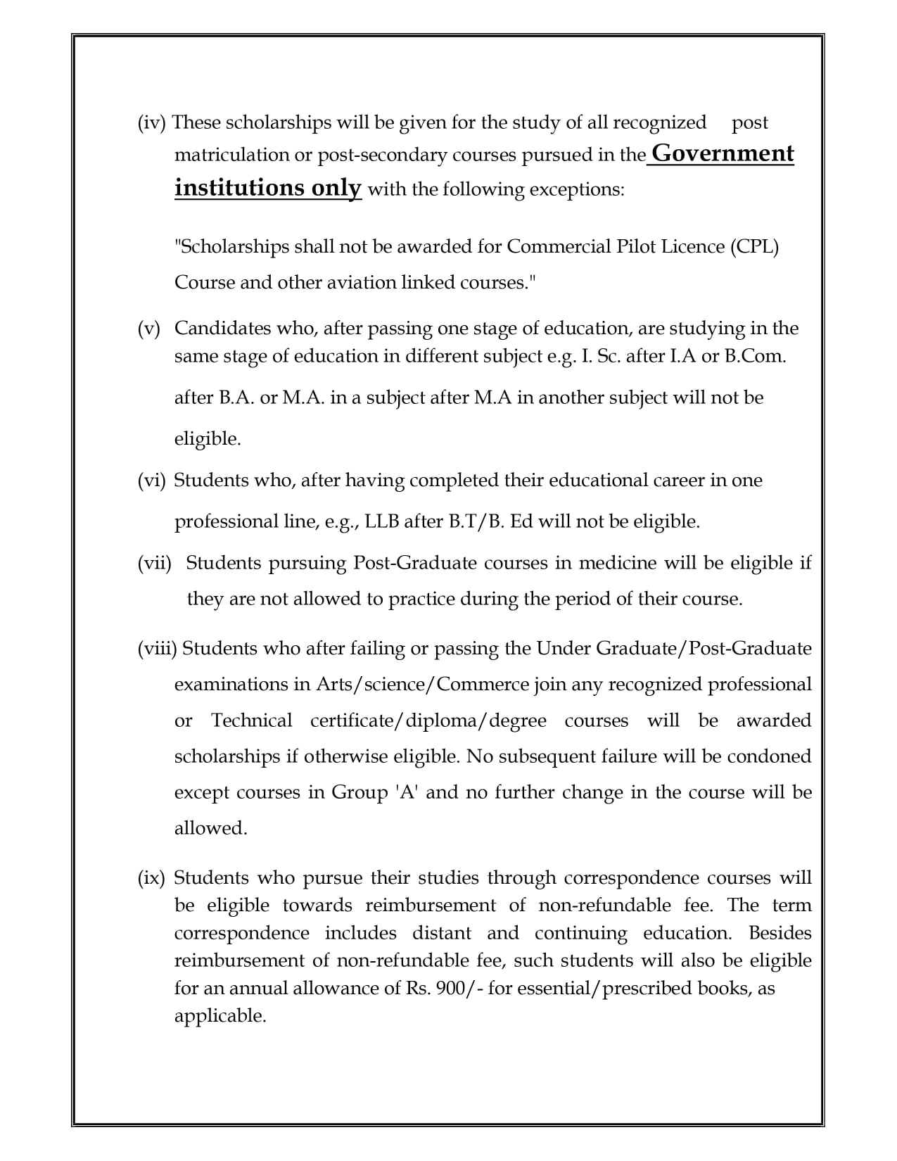 - പഠനം സർക്കാർ സ്ഥാപനങ്ങളിൽ ആയിരിക്കണം.