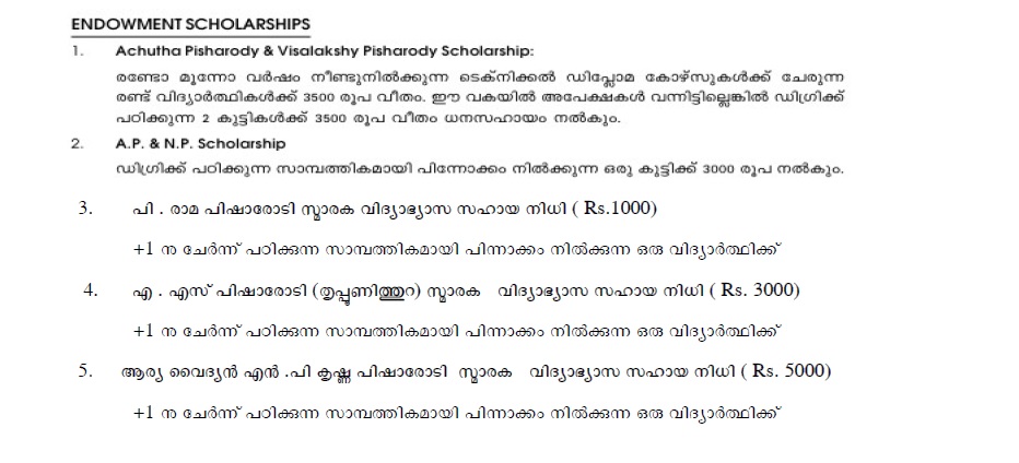 പിഷാരോടി സമാജം തൃശൂർ ശാഖയുടെ ചാരിറ്റി പ്രവർത്തനങ്ങളുടെ ഭാഗമായി സർക്കാർ തലത്തിൽ ബുദ്ധി മാന്ദ്യം സംഭവിച്ച കുട്ടികളെ അധിവസിപ്പിച്ചിട്ടുള്ള പ്രത്യാശാഭവൻ, അനാഥരായ പെൺകുട്ടികളുടെ അതിജീവനത്തിനു വേണ്ടി സ്ഥാപിച്ചിട്ടുള്ള സ്ഥാപനം എന്നിവിടങ്ങളിലുള്ളവർക്ക് വേണ്ടി നിത്യോപയോഗ സാധനങ്ങൾ, തയ്യൽ മെഷീൻ, സീലിംഗ് ഫാൻ, വസ്ത്രങ്ങൾ എന്നിവ വിതരണം ചെയ്തു