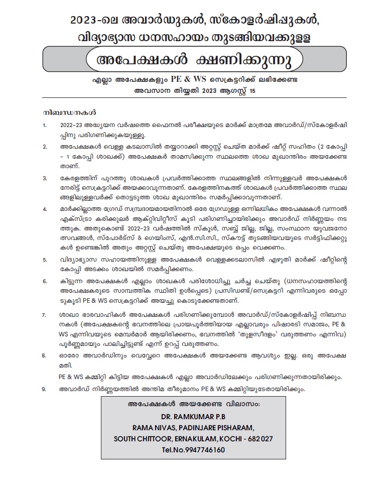 2023 ജൂൺ 13 ന് പൂർണ്ണത്രയീശ ക്ഷേത്ര ഊട്ടുപുര ഹാളിൽ വച്ച് തൃപ്പൂണിത്തുറ നഗരസഭ ചെയർപേഴ്സൺ ശ്രീമതി രമ സന്തോഷിൻറെ അധ്യക്ഷത വഹിച്ച്, ബഹു. എം.എൽ.എ K. ബാബു ഉൽഘാടനം ചെയ്ത ചടങ്ങിൽ വെച്ച് തൃപ്പൂണിത്തുറ അമ്പലം വാർഡ് കൗൺസിലർ ശ്രീമതി രാധികാ വർമ്മ സ്കോളർഷിപ്പ് വിഷ്ണുദത്തന് നൽകി.