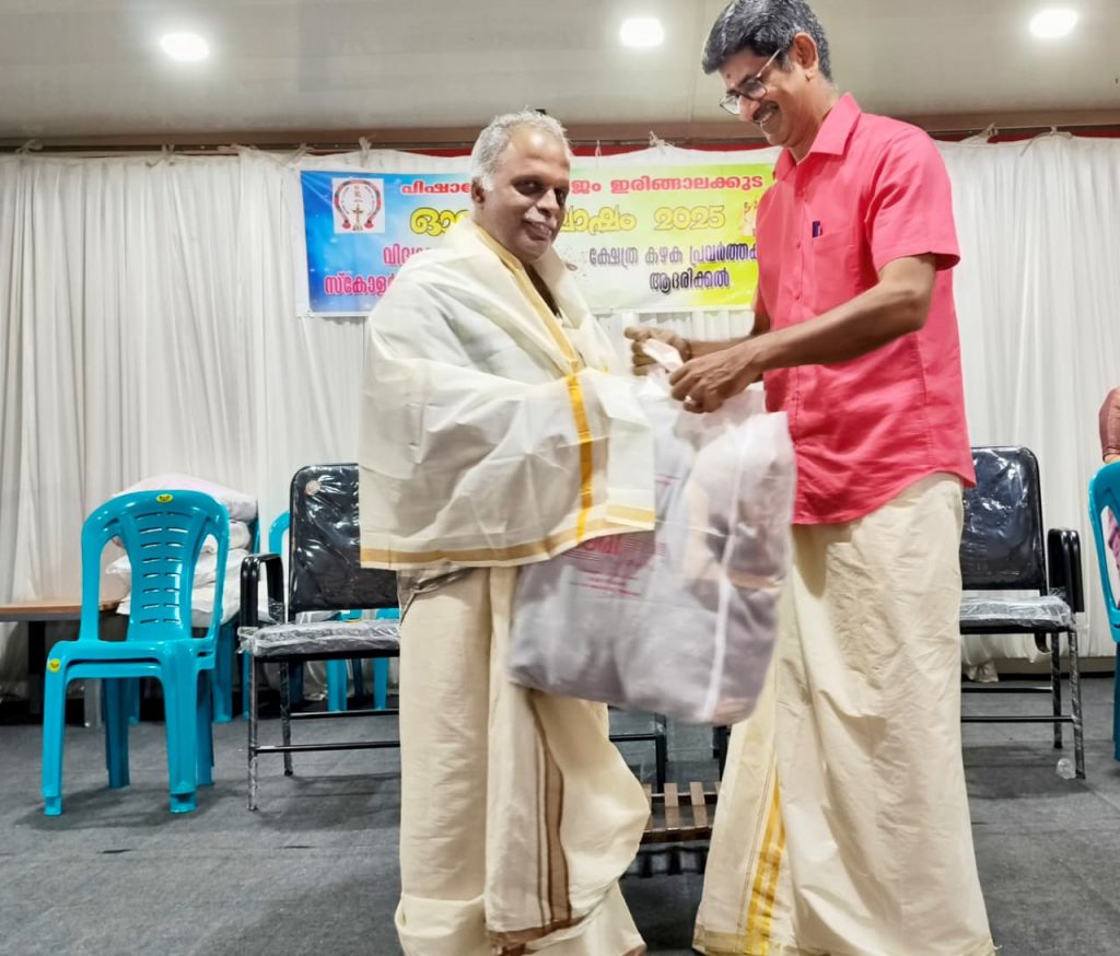 കഴകപ്രവർത്തകരെ ആദരിക്കുമ്പോൾ നല്കുന്ന സ്നേഹോപഹാരം സ്പോൺസർചെയ്ത ശ്രീ ഭാസ്ക്കര വാര്യർ, ഇരിങ്ങാലക്കുട ശാഖയുടെ മികച്ച പ്രവർത്തനം കഴിഞ്ഞ മെയ് മാസത്തിൽ നടന്ന കേന്ദ്ര വാർഷികം ഭംഗിയായി നടത്തിയതിലൂടെ നേരിൽ കണ്ടതാണെന്നും ശാഖയുടെ മുന്നോട്ട് ഉള്ള പ്രവർത്തനങ്ങൾക്ക് കഴിയുന്ന എല്ലാ സഹായ സഹകരണവും ഉണ്ടാകുമെന്നും ഉറപ്പ് നൽകി.