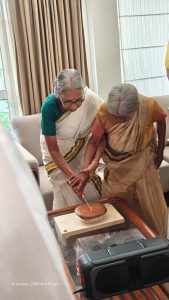 രക്ഷാധികാരികളായ ശ്രീമതി പത്മാവതി പിഷാരസ്യാരും ശ്രീമതി ശ്രീദേവി പിഷാരസ്യാരും ചേർന്ന് കേക്ക് മുറിച്ച് പുതുവത്സരത്തെ സ്വാഗതം ചെയ്തു.